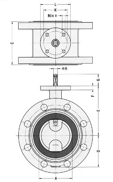 размер по фланцам DIN 3202 F16 (EN 558) - ISO 5752